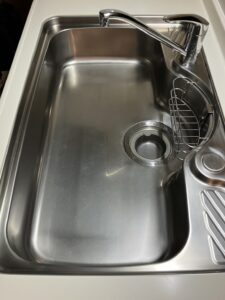 キッチンシンク、天板に深い傷があり、目立たなくする為にコーティング依頼をいただきました。